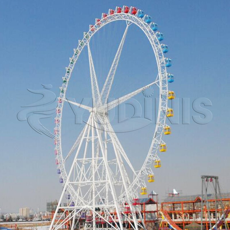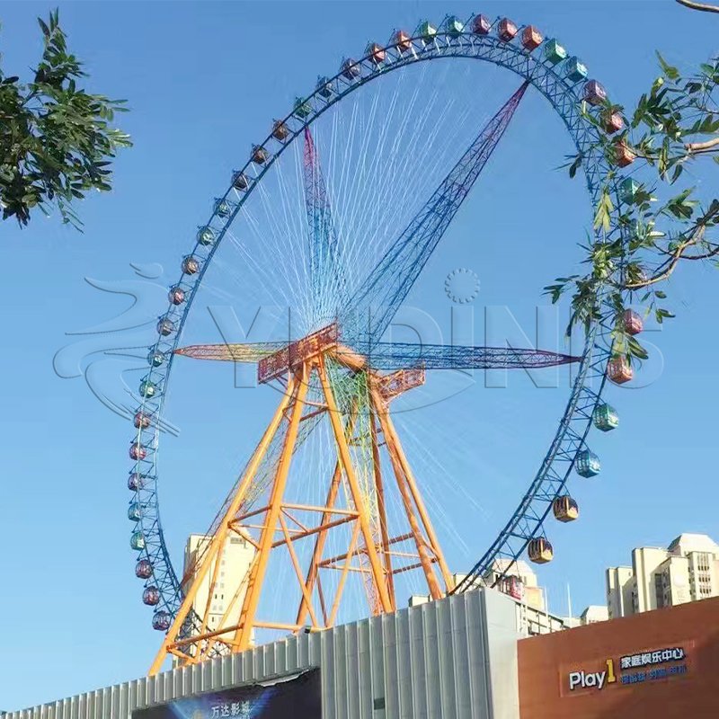 Struktur roda yang menjulang tinggi mencapai ketinggian 46 meter, menjadikannya fitur yang menonjol di tempat hiburan mana pun. Dibangun dengan rekayasa presisi dan bahan berkualitas untuk menjamin daya tahan, keamanan, dan kinerja yang andal bahkan dengan penggunaan yang sering. Kabin tertutup memberikan pengalaman berkendara yang nyaman dan aman, menawarkan pengalaman bersantai kepada penumpang sambil menikmati pemandangan panorama sekitar. Sempurna untuk individu, keluarga, atau kelompok, ini adalah atraksi yang tidak pernah ketinggalan zaman.