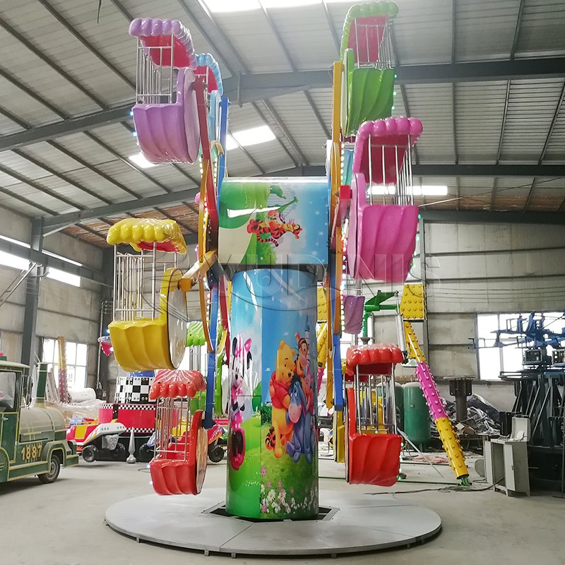 Setiap kabin tertutup rapat, memberikan keamanan bagi si kecil saat menikmati perjalanan. Lampu LED mengelilingi bianglala, menambahkan sentuhan mempesona saat menerangi seluruh struktur, menciptakan tampilan visual yang spektakuler di malam hari. Lampu LED menambahkan lapisan kegembiraan ekstra dan menjadikan perjalanan ini fitur menonjol di lingkungan apa pun, menarik banyak orang dengan cahaya magisnya.