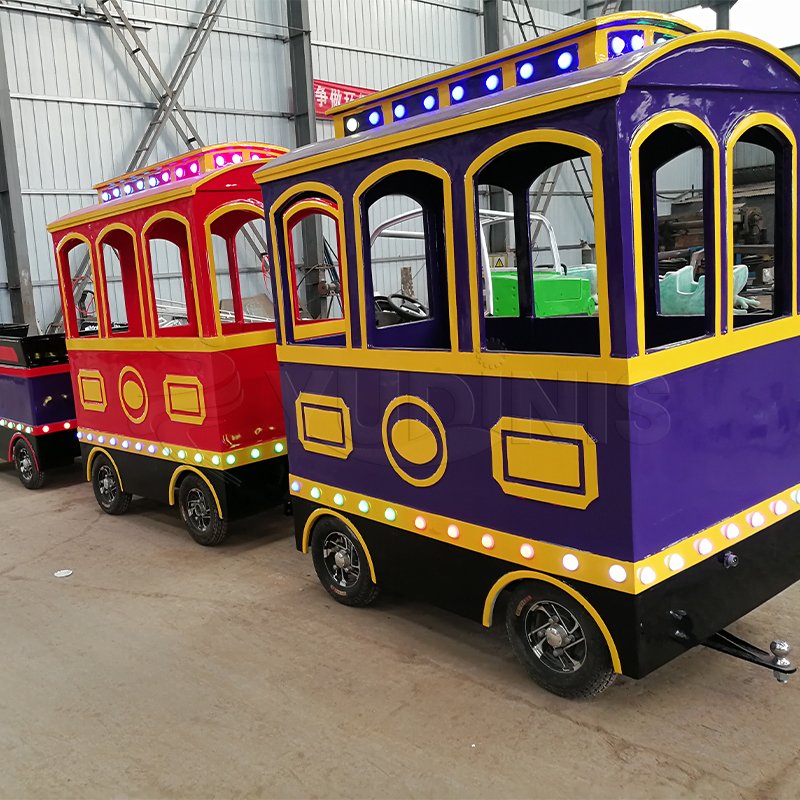 Sifat kereta tanpa rel ini memungkinkannya untuk melintasi berbagai lingkungan, dari taman hiburan yang ramai hingga jalan setapak taman yang tenang, tanpa batasan rel. Fleksibilitas ini menjadikannya pilihan ideal untuk berbagai acara, meningkatkan suasana dengan daya tarik abadi. Motor listrik ramah lingkungan memastikan pengoperasian yang tenang dan berkelanjutan, sesuai dengan standar lingkungan kontemporer.