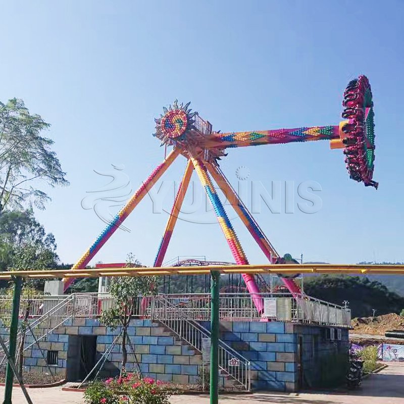 Dirancang untuk taman hiburan besar, Giant Pendulum Ride adalah atraksi utama yang ideal. Desainnya yang semarak dan penuh warna menyempurnakan suasana taman, sementara skalanya yang mengesankan menjadikannya fitur khas yang menarik para pencari sensasi dari segala usia. Kapasitas wahana dioptimalkan untuk mengakomodasi sejumlah besar tamu secara efisien, menjadikannya aset berharga bagi taman yang ingin meningkatkan kehadiran dan kepuasan pelanggan.