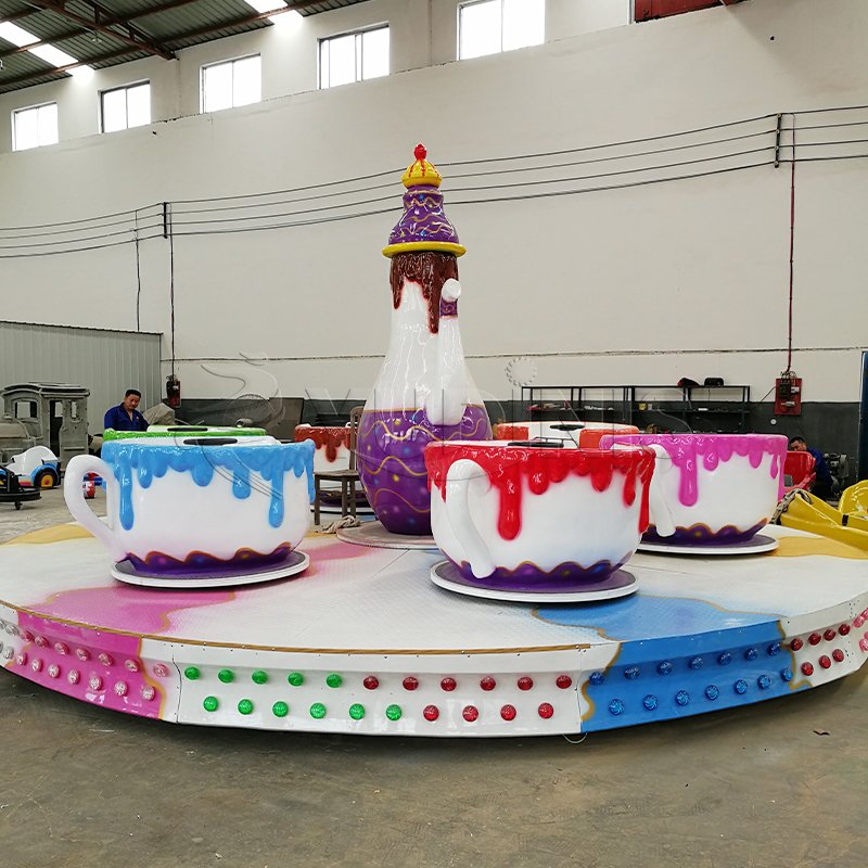 Didesain untuk menjadi pusat dari setiap area hiburan, warna-warna cerah dan pola lucu di wahana ini menarik perhatian dan menciptakan suasana yang menarik. Cangkirnya berputar satu per satu, memungkinkan pengendara kecil mengontrol petualangan pemintalan mereka sendiri, menambahkan elemen interaktif pada kesenangan.