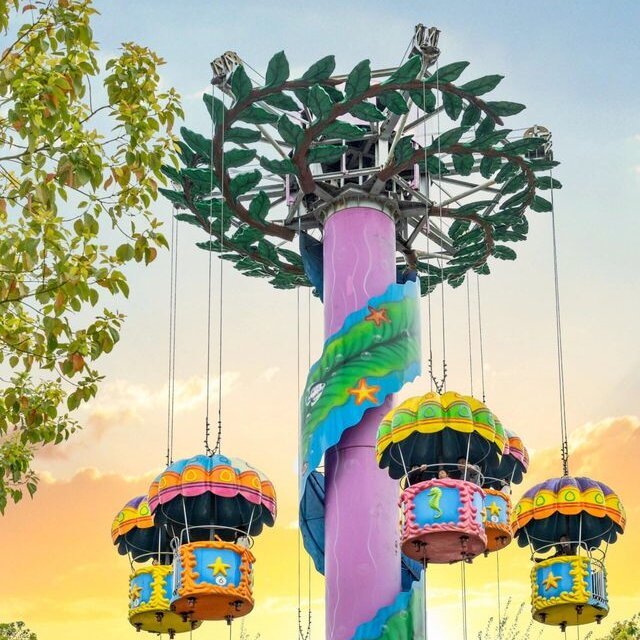 Pengunjung diangkat perlahan ke puncak, menikmati momen ketegangan singkat sebelum mengalami jatuh bebas yang mulus dan terkontrol yang mensimulasikan sensasi terjun payung di langit. Kanopi unik berwarna-warni dan gondola bertema yang menawan meningkatkan daya tarik visual secara keseluruhan, memberikan kesenangan dan kegembiraan bagi pengunjung dari segala usia.