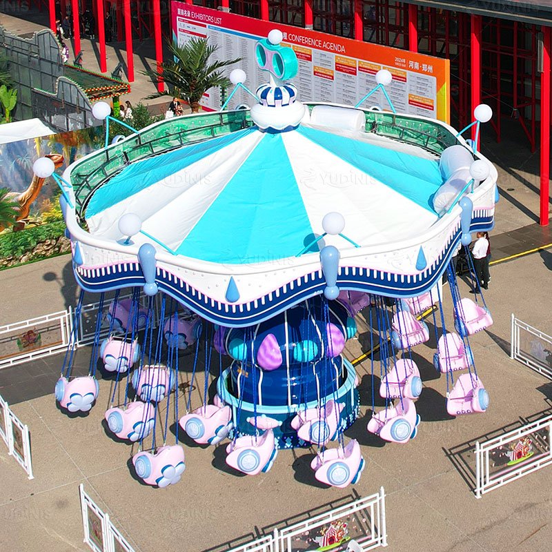 Naik kursi terbang 24 kursi dengan desain ungu yang memukau, menawarkan pengalaman terbang yang aman dan menegangkan dengan efek pencahayaan yang indah. Sempurna untuk pengunjung segala usia, wahana ini menambahkan sentuhan mewah dan menyenangkan ke taman mana pun.