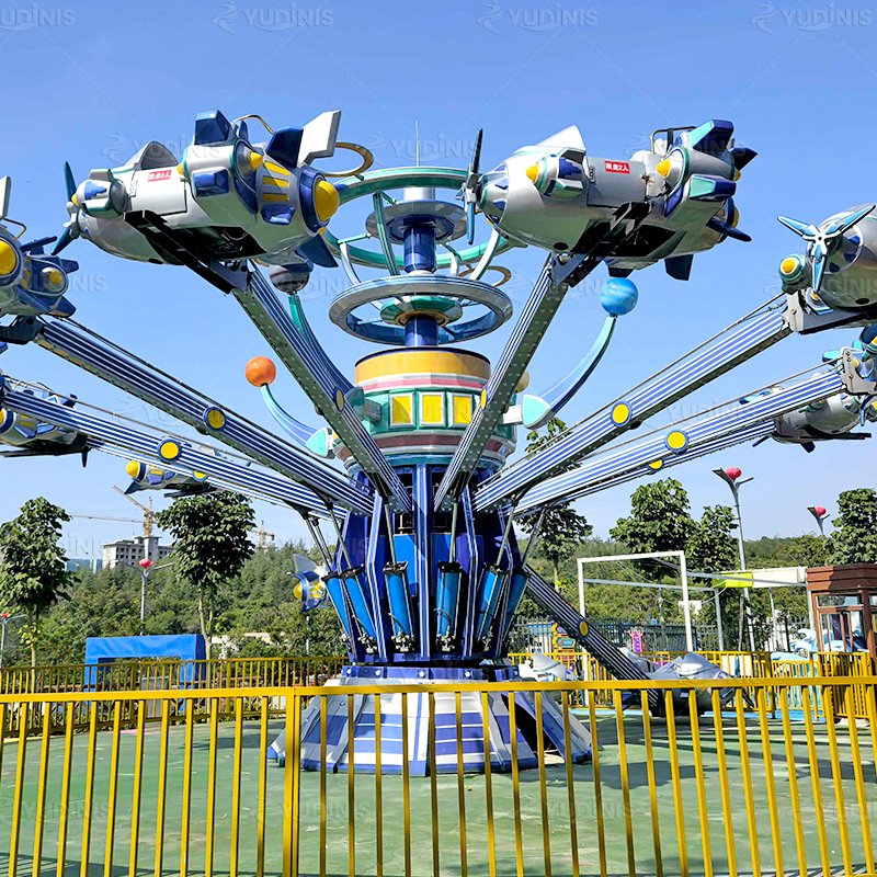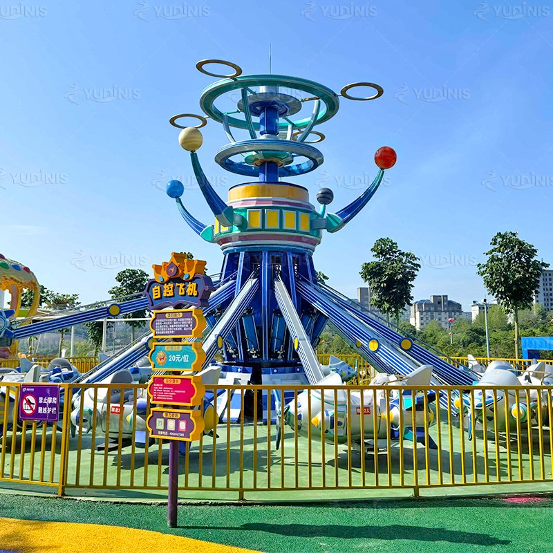 Pesawat Kendali Diri Baru 12 Lengan adalah wahana hiburan mendebarkan yang menggabungkan imajinasi, kegembiraan, dan kesenangan interaktif untuk anak-anak dan keluarga. Dengan dua belas kabin berdesain indah yang mengelilingi menara pusat bertema roket, setiap pengendara muda dapat mengendalikan pesawatnya sendiri, menekan tombol untuk naik atau turun, memberi mereka sensasi terbang di angkasa yang menggembirakan. Rotasi perjalanan yang mulus dan sistem elevasi yang responsif memastikan pengalaman yang menyenangkan namun aman bagi setiap peserta, sementara desain interaktif membantu anak-anak mengembangkan koordinasi dan kepercayaan diri saat mereka menavigasi penerbangan mereka sendiri.
